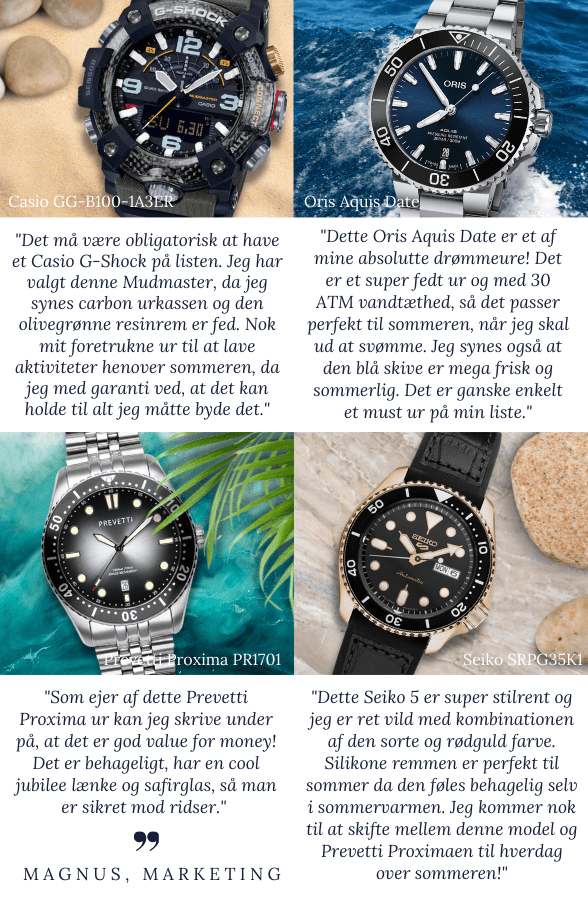 Bliv helt sommerklar med et fedt ur på håndleddet! På denne side har vi samlet vores bud på de mest ideelle ure til denne sommer til både mænd, kvinder og børn. Som bonus finder du i øvrigt lidt ekstra inspiration i form af vores teams egne personlige valg til denne sommer, som du kan læse mere om længere nede på siden.